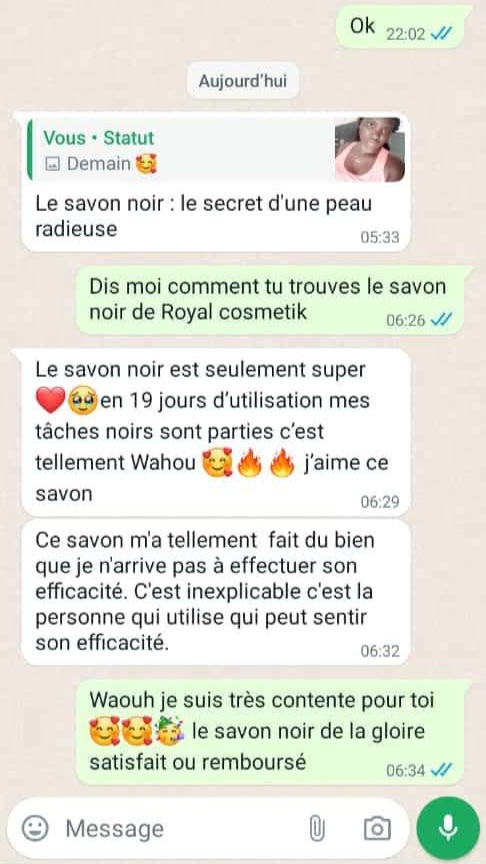 Chaque matin nouveau témoignage sur l'efficacité du SAVON NOIR de Royal Cosmétik !