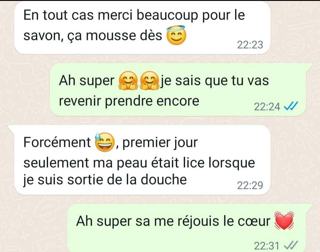 Ce savon fait des miracles il purifie nettoie et illumine votre peau tout naturellement. 🌿✨ Rend ta peau plus éclatante et douce avec un soin 100% naturel et adapté à tous les types de peaux. Ne reste pas à l'écart de ce secret de beauté ! 😍